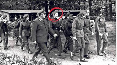 La cancelliera in una foto in bianco e nero, scattata nel 1972, all’età di 17 anni appare in uniforme da volontaria civile della Ddr
