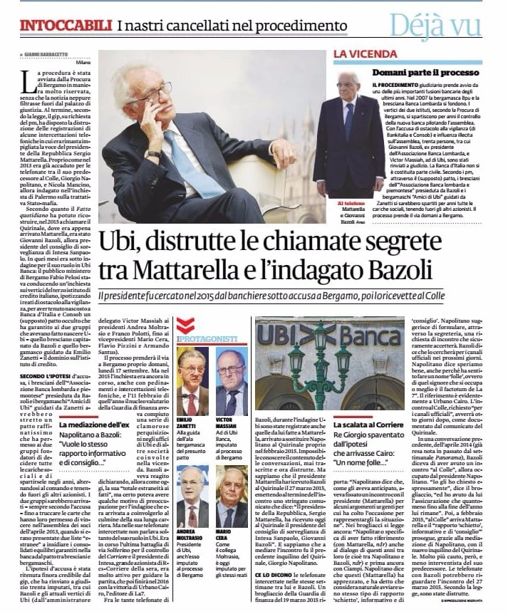 Ecco un esempio: Ubi, cancellate chiamate segrete tra Mattarella e l’indagato Bazoli. Procedura avviata da Procura di Bergamo in maniera molto riservata, senza che la notizia neppure filtrasse fuori da palazzo giustizia (il Fatto)