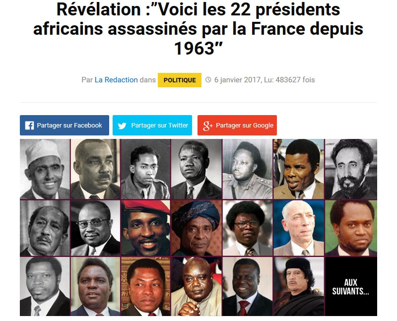 – 2011: Muhammar Gheddafi progettava di rimpiazzare il franco CFA con una nuova valuta pan-africana basata sul dinaro libico e sostenuta dalle ingenti riserve auree di Tripoli. La Libia viene bombardata dalla Francia e Gheddafi ucciso. Una e-mail del 2 aprile 2011 ricevuta dall’allora segretario di Stato americano Hillary Clinton da un suo stretto collaboratore (https://wikileaks.org/clinton-emails/amailid/6528) spiegava che questa era la motivazione principale dell’attacco militare francese.