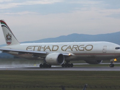 Come dubitare della credibilità di Al Arabyia? Specie quando parla di ISIS, sa quel che dice. E’ la tv degli Emirati, che finanziano ed armano l’ISIS a più non posso insieme ai loro grossi vicini sauditi. Come sapete, agli Emirati appartiene anche la prestigiosa compagnia aerea Etihad. Che possiede anche una flotta-cargo. Eccone un aereo: