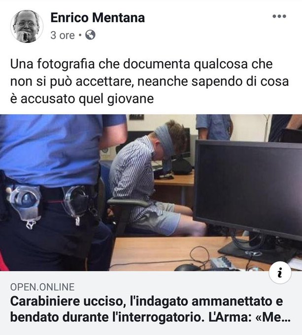 Alti ufficiali dei carabinieri si affrettano a dire che la bendatura è non solo “grave”, ma “illegale”, preparando il terreno agli avvocatoi – che non ne hano certo bisogno – per invalidare l’intera indagine.