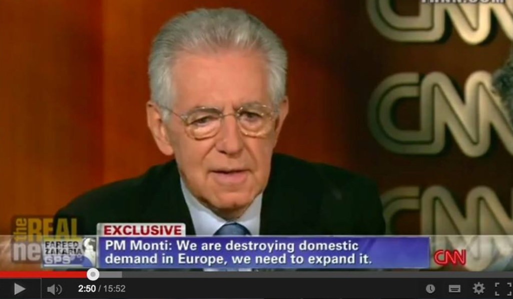 Siccome in questi giorni sembra in atto una manovra europea contro Renzi, in cui i signori hanno lanciato il loro delegato Mario Monti, vorrei ricordare che se c’ qualcosa di peggio del governo Renzi, è il governo Monti. Quello che abbiamo già provato e che ha distrutto l’economia. Su ordine dei poteri forti. E con il sostegno della componente di Bersani del PD, che – chissà perché – i media dichiarano “di sinistra” o “progressista”.