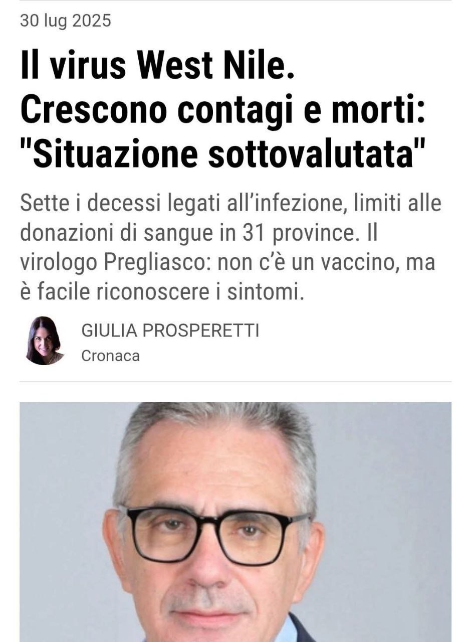 Se la notizia la titolassero i giornali, vi fareste qualche domanda, per esempio, sulla chemio. Invece devono terrorizzarvi con il West Nile, perché hanno preparato per voi il VAX…