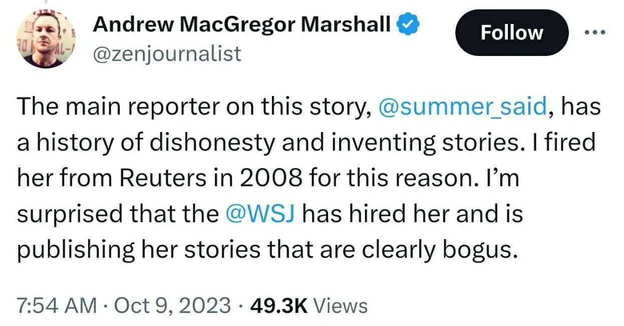 ❌ L’autore della storia sulla partecipazione dell’Iran all’attacco a Gaza, Summer Said, è stato licenziato da Reuters per “numerosos casi di disonestà e invenzioni di fatti”.