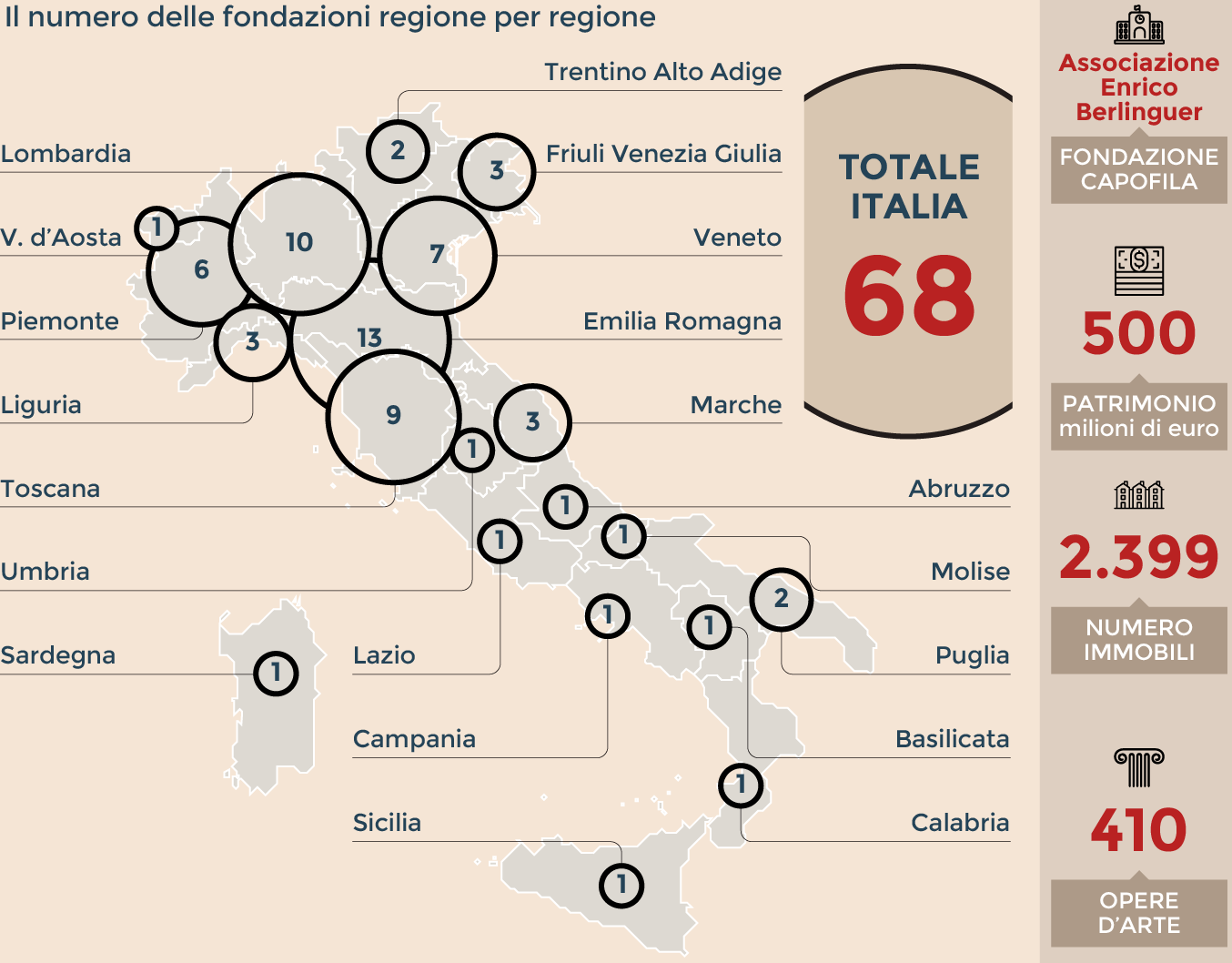 Le 68 fondazioni sono distribuite in tutta la penisola ed hanno come capofila l’associazione Enrico Berlinguer. Un patrimonio che fa gola ai Democratici, soprattutto in un periodo in cui i finanziamenti ai partiti languono.