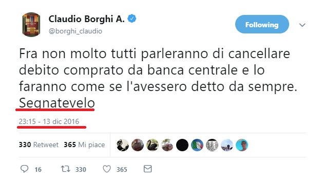 Che dire? Un twitterologo riporta questa frase di Borghi, risalente al 2016.
