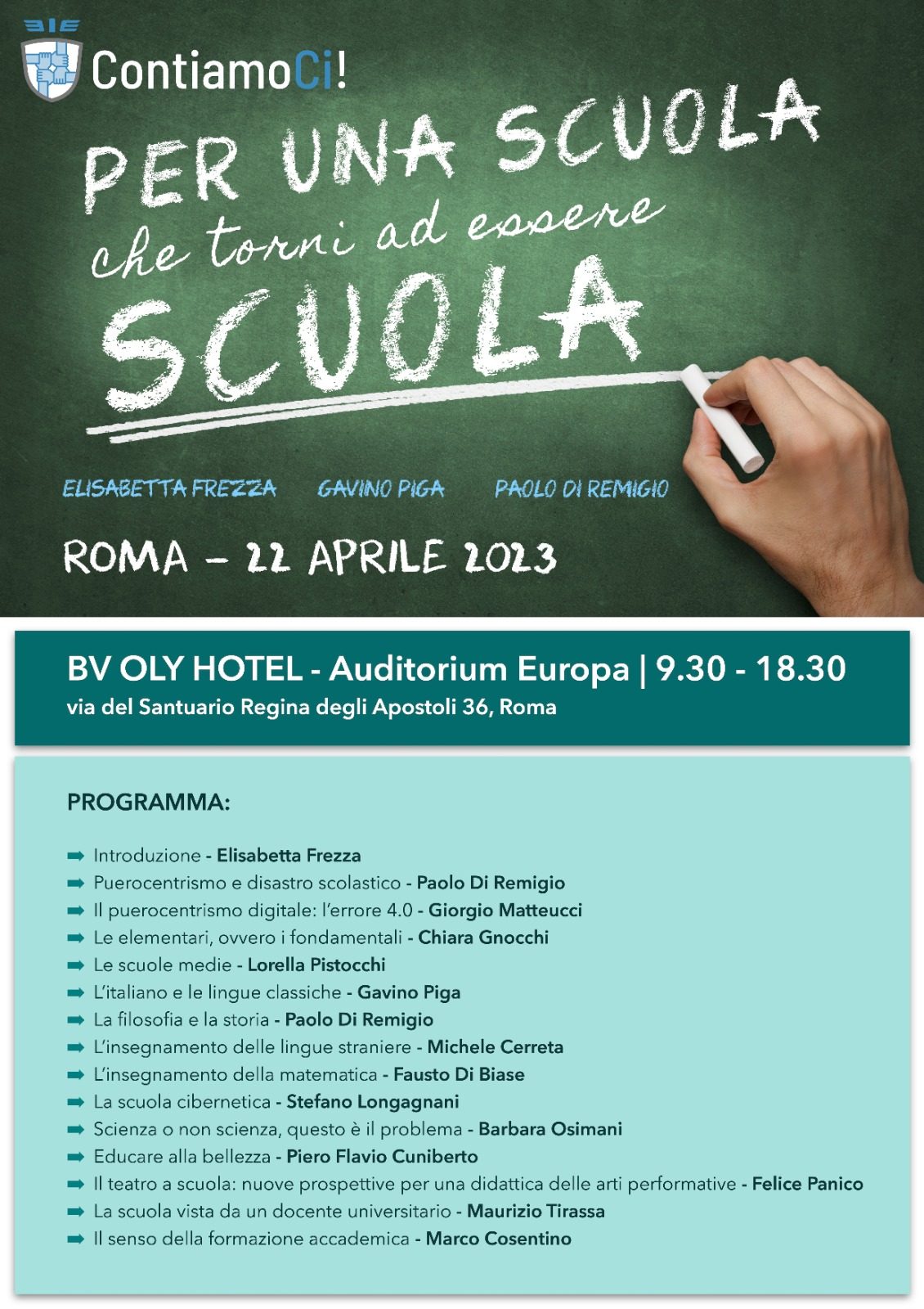 L’associazione ContiamoCi organizza un convegno a Roma il prossimo 22 aprile per esaminare le cause di un fenomeno complesso, che ha radici profonde, e per offrire delle concrete proposte di rimonta. Si rivolge a docenti, dirigenti, genitori, e a chiunque abbia a cuore le sorti delle giovani generazioni. Vale a dire, il futuro di tutti noi.