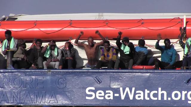 Immagini esclusive, ecco donne e bambini della Sea-watch 3. Alcuni di loro nonostante la tenera età sono alti 190 cm; un povero migrante per proteggersi dall’ipotermia si è denudato e si sbraccia alla vista delle telecamere.