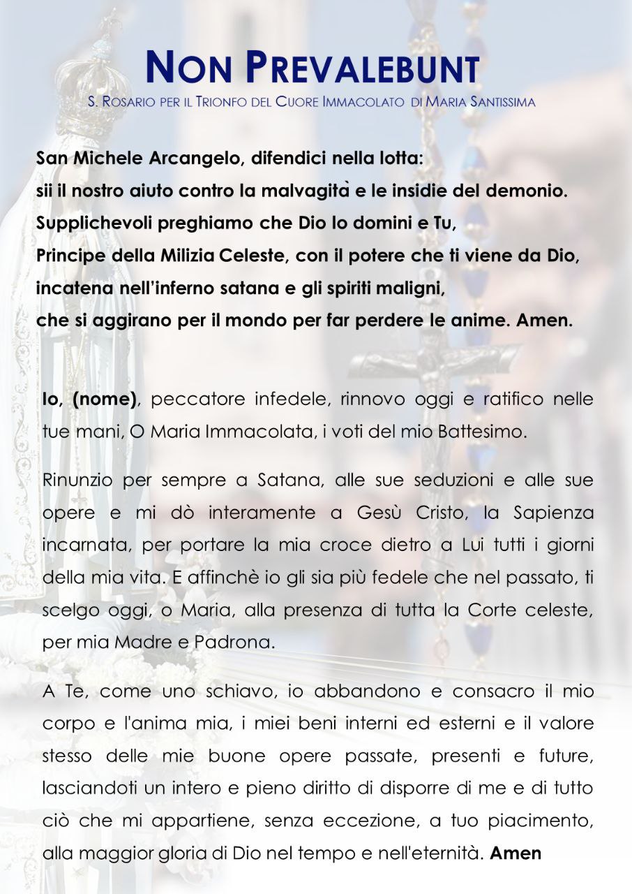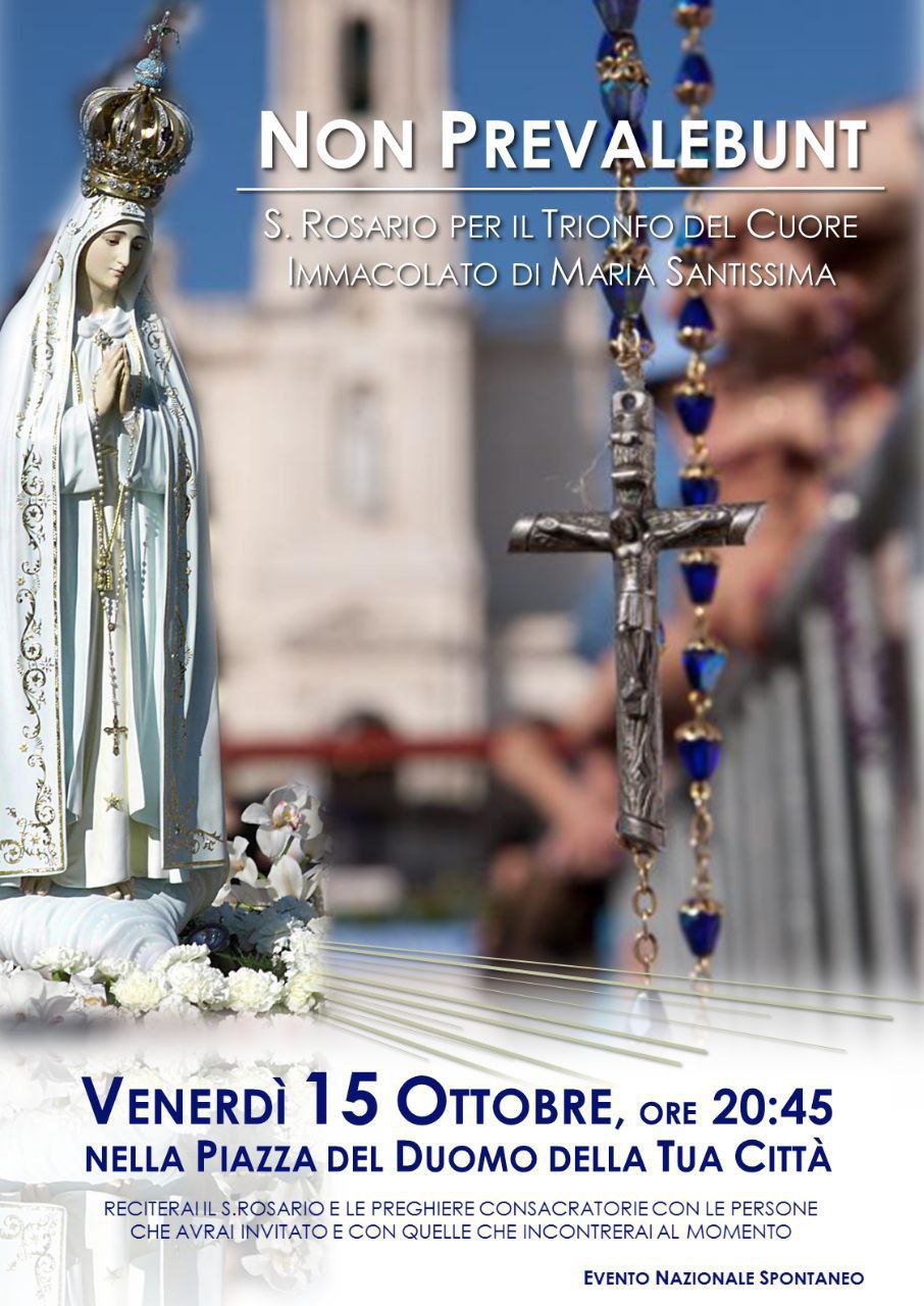 Ricevo da amici questo invito e queste locandine. Aderisco e chiedo di aderire a questa iniziativa: oggi, il trionfo del Cuore Immacolato di Maria come evento meta-politico ci è stato promesso, ed è la nostra sola speranza di liberazione dalle catene. Ci sono rivelazioni private che affermano che “la prova durerà 43 mesi”. Possiamo ottenere, pregando “con alte grida”, che questo tempo sia abbreviato.