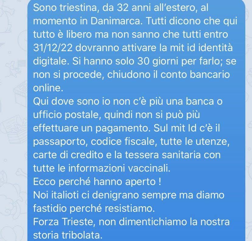 Persino un’amica che sta in un paese baltico sta vedendo la diretta: “Sto guardando la diretta a Trieste e sono un bagno di sudore. Una donna in prima fila spiega ad un paio di barbari in divisa le leggi e il trattato del 1947 relativi alla giurisdizione sulla città”.