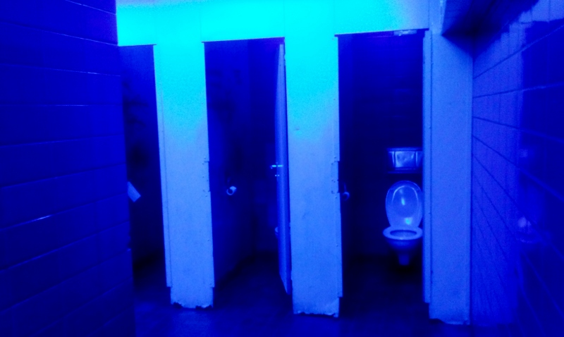 Geniale l’illuminazione a luce blu nelle toilettes pubbliche:  rende impossibile ai tossicodipendenti usarle per iniettarsi la dose, dato che non riescono a vedersi le vene.