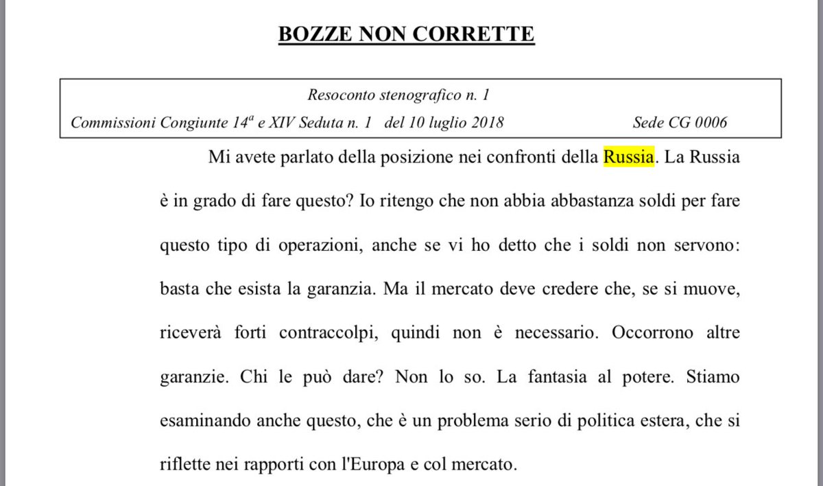 Aggiungo qui che la notizia diffusa dai media, seocndo cui SAvona avrebbe eto: Ci aiuta Putin, è una fake news.
