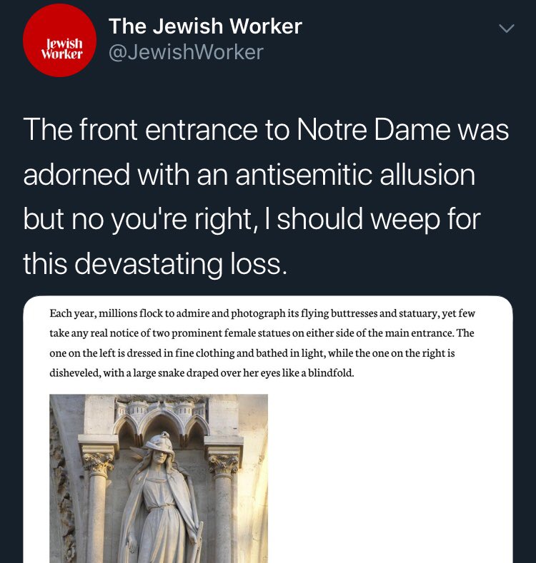 Un altro ricorda che “l’entrata di Notre Dame era adornata di una allusione antisemita” –