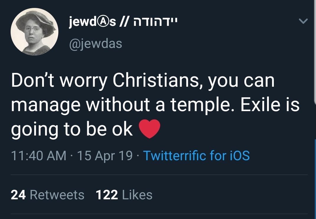 Maybe the burning of #NotreDame is an iota of karma for the burning of the Talmud perpetrated by the Catholics in Paris in 124