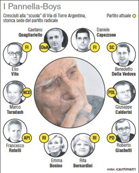 Poi (2005) entra nella Casa della Libertà in un guppo di radicali appositamente formato (Marco Taradash , Giuseppe Calderisi e Carmelo Palma) perché scopre che “il posto più adatto alle istanze radicali e liberali fosse il centrodestra”; mentre con movimento specularmente contrario, Pannella intruppa il suo partitino nella “sinistra”, formando “La Rosa nel Pugno”, simbolo usato dal socialista Mitterrand.