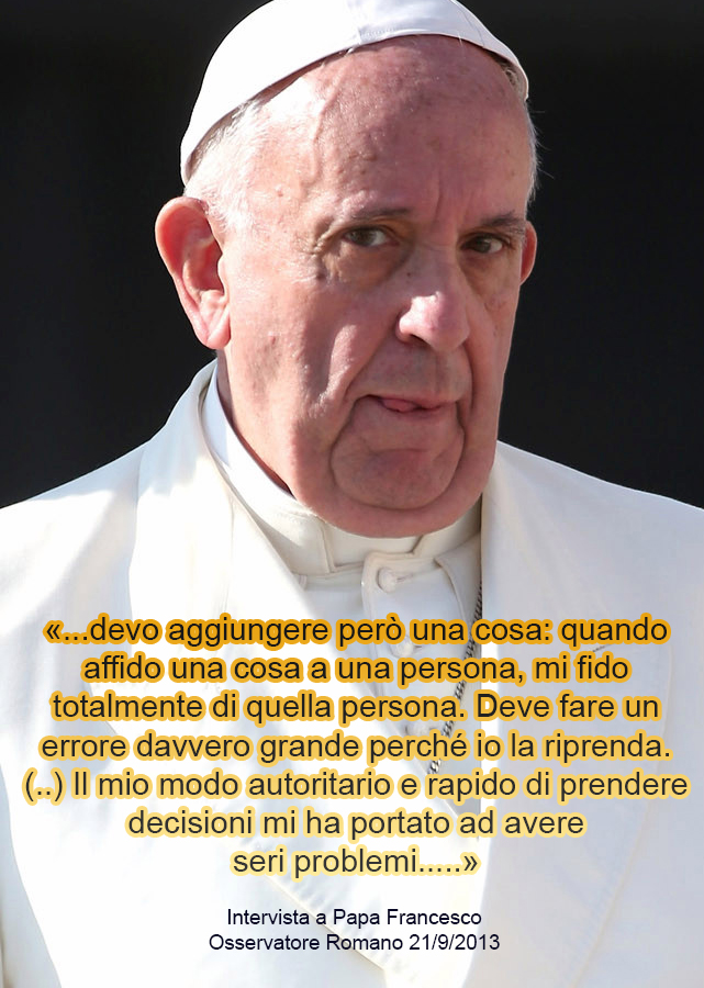 Una “bontà” che ha prodotto in Vaticano un regime di terrore: lui sbatte fuori, licenzia, esclude, dittatorialmente, anzi dispoticamente. “Io sono il papa, e non devo dare ragione a nessuno delle mie decisioni”, come secondo il vaticanista Tosatti ha detto quando ha preteso il licenziamento di un dipendente vaticano che lo aveva criticato.