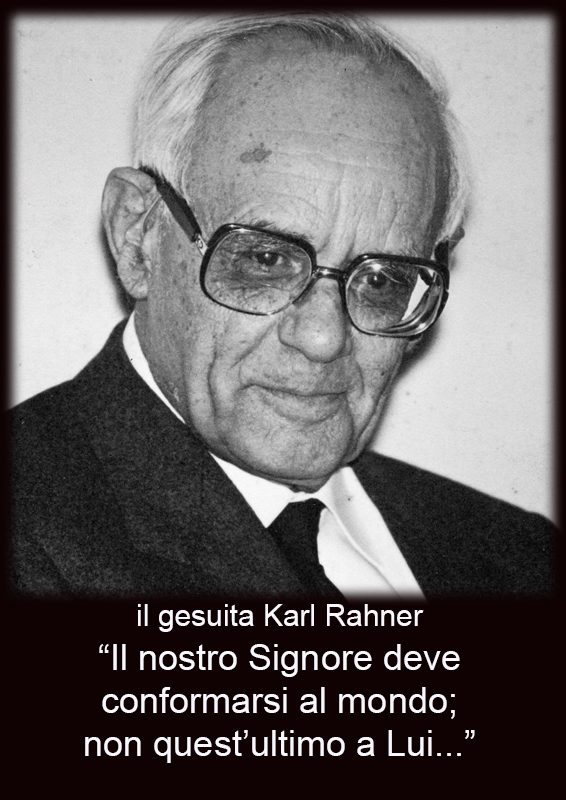 Anche in questo, in fondo, “Francesco” è un allievo estremo, caricaturale, di Rahner. Aveva pur detto, lo pseudo-teologo tanto amato Dai gesuiti: : «Il nostro Signore deve conformarsi al mondo; non quest’ultimo a Lui…». Promotore “di una teologia cioè che metta da parte Gesù e che vada bene per il nostro secolo», come vide il cardinal Siri.