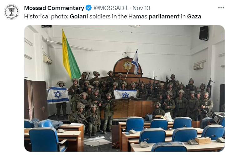 Si tratta dello stesso Battaglione che aveva occupato il Parlamento palestinese (poi fatto saltare in aria dagli stessi invasori israeliani) e il quartier generale della Polizia a Gaza, scattandovi foto ricordo.