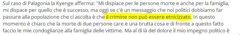 Vedete, se Gad Lerner invoca il rientro di Kyenge nel governo, sarà bene ricordare che, a seguito dell’orrendo massacro della coppia di coniugi a Palagonia per mano di un africano (attualmente a processo), la signora ebbe a dichiarare quanto segue: