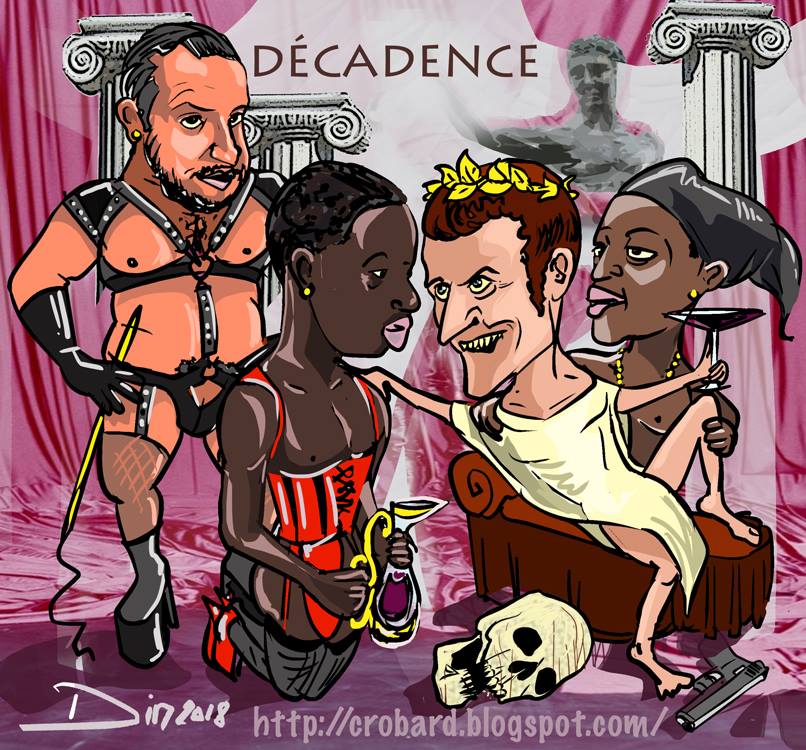 Una quantità di deputati macronisti si sono dati, ubriachi, ad un festino che per chiari motivi è stato chiamato dal Canard “la festa dello slip” , il 31 luglio all’Hotel Lassay, che è la residenza ufficiale del presidente dell’Assemblea: una festicciola organizzata dal presidente stesso Francois de Rougy, macroniano di ferro, per celebrare la fine della sessione parlamentare e l’inizio delle vacanze. Puro Eliogabalo; Maria Antonietta almeno questo non l’avrebbe fatto.