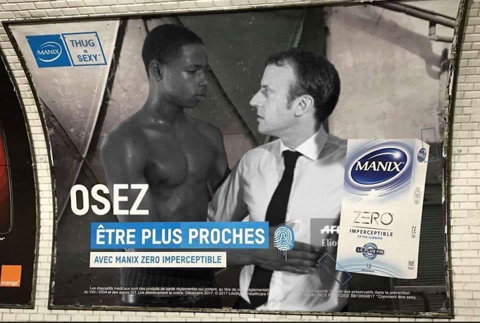 Ho tradotto con “cazzate” la parola “conneries”. Ci si chiedeva dove fosse finita la moglie-nonna mentre “Manu” si faceva fotografare alluzzato fra i martinicani a torso nudo (tra l’altro, si è saputo, “conosciuti alla polizia”), e si produceva in gaffes arroganti e male auguranti per la sua rielezione in ogni incontro la “la gente”comune, dato il collasso della sua popolarità nei sondaggi.