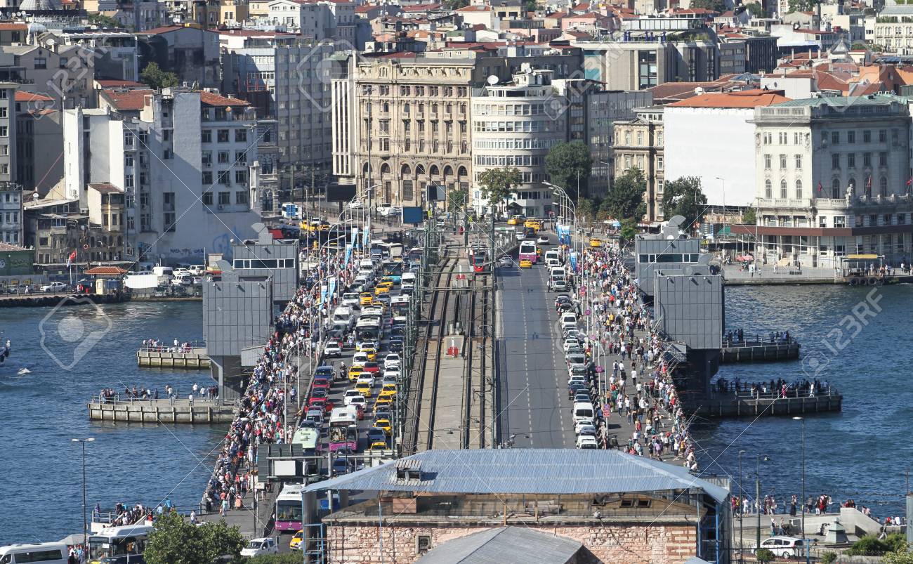 Galata Bridge and Karakoy district in Istanbul city, Turkey