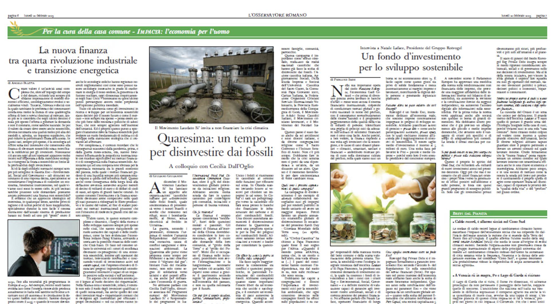 L’articolo di sinistra: l’organo del Vaticano aderisce esplicitamente e totalmente alle due distopie gnostiche imposte a Davos dai miliardari: la Quarta Rivoluzione Industriale e la riduzione delle fonti energetiche che mantengono in vita l’umanità all’attuale livello di sviluppo.