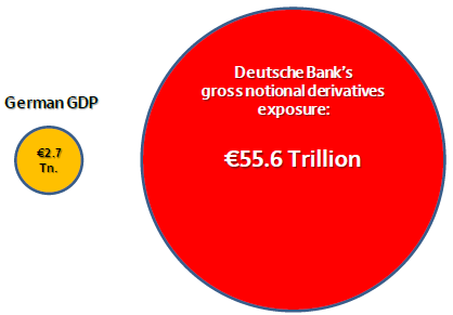 Ancora una volta, qualche giorno fa, ha cambiato le regole di contabilità dei derivati per mantenere in vita Deutsche Bank: la quale (cito 24 Ore) “ ha emesso derivati per 75mila miliardi di euro, 20 volte il Pil tedesco, e nel suo bilancio attuale pesano 32 miliardi di euro di derivati ad alto rischio e un’altissima leva finanziaria: fatti due conti, anche un calo del 4% del valore degli attivi potrebbe azzerare il capitale del colosso tedesco”. Si tratta di “ingenti quantità di titoli tossici, strumenti finanziari a cui non si riesce a dare un prezzo perché non trattati sui mercati”.
