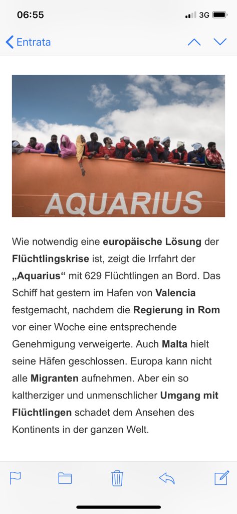 “L’Europa non deve accettare tutti i migranti”, ma l’Italia dovrebbe  farlo “per non  nuocere al prestigio del Continente” (Handelsblatt, 18.06.18, „Morning Briefing“).