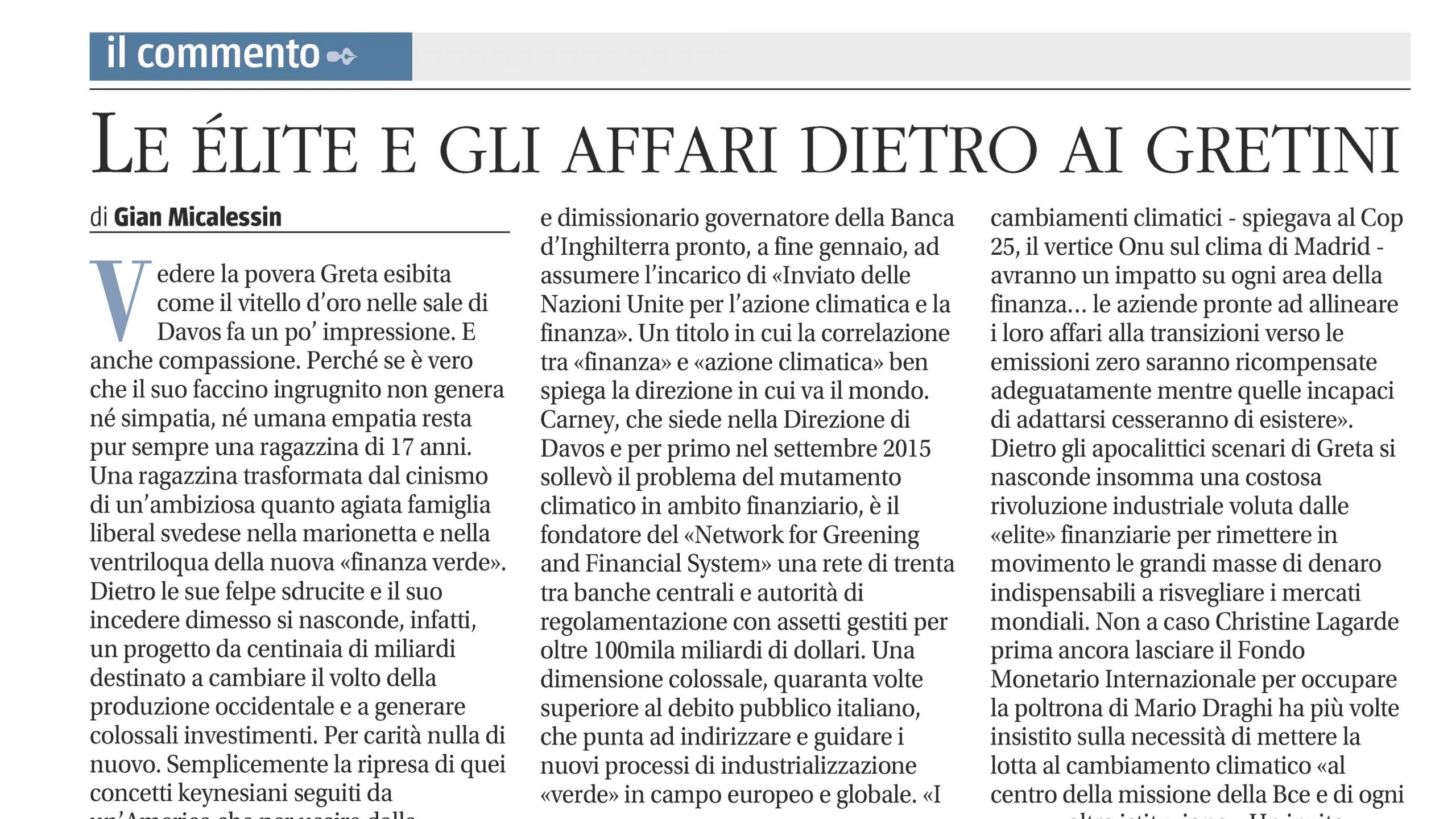 Mi sarete testimoni: la professione di “complottista” è diventata non difficile, ma inutile. Nemmeno hai il tempo di cominciare a chiederti “quali interessi dietro Greta?”, che ecco: data una gomitata alla ragazzina, si presenta Black Rock: la più colossale finanziaria speculativa della storia, che per i clienti miliardari gestisce quasi 7 mila miliardi di dollari, e assume su di sé il progetto di combattere il riscaldamento climatico. Persino il Corriere dedica un paginone all’impegno di BlacRock per il “climate change”, “è il nostro focus” dice il suo capo supremo, Larry Fink.