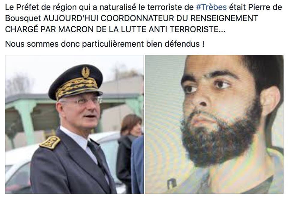 Chi gli ha dato la cittadinanza? Il prefetto della regione, Pierre de Bousquet. Un tutore dell’ordine dal fiuto eccezionale, come si vede. Tanto è vero che oggi, Macron in persona lo ha elevato alla poltrona di Coordinatore dell’Intelligence (Reinsegnement) per la Lotta Anti-Terrorismo.