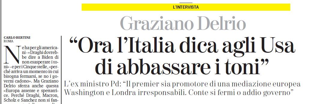 Stamane De Benedetti, uno degli uomini più influenti delle élite liberali “italiane” e già partecipe della dismissione del patrimonio pubblico industriale dell’IRI assieme a Romano Prodi, commenta la crisi in Ucraina. De Benedetti sostiene che l’UE non ha alcun interesse a seguire Biden nella “guerra a Putin”. In realtà l’ordine dei fattori va capovolto perché la guerra a Putin in realtà la sta facendo proprio l’UE stessa mentre Biden al di là di annunci a favore del regime di Zelensky non ha ancora fatto avere alcun sostegno concreto ai nazisti di Kiev.