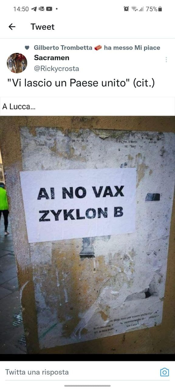 Spero dunque ardentemente che il ministro Speranza aderisca al mio desiderio – con uno dei tanti decreti, ordini che agli ultra-50 No-Vax che lo chiedano volontariamente, venga somministrato il cianuro nazi, invece del mRNA Pfizer.