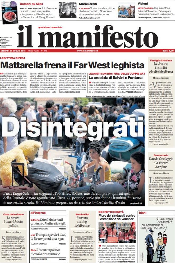 Ovviamente i media esultano perché capiscono con chi ce l’ha Mattarella: “Mattarella frena il far west leghista”, titola Il Manifesto. Avvenire, idem, sempre più spesso identico al Manifesto: “L’Italia non sia il far west”, eccetera.