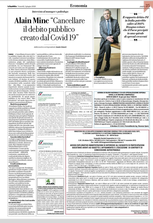 La sfrontata impudenza mediatica è ben esemplificata dalla paginona di Repubblica che intervista Alain Minc (uno dei potenti della pompe à fynance che hanno “creato” Macron)