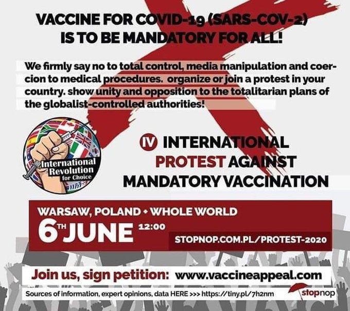 IVª PROTESTA INTERNAZIONALE (GLOBALE) CONTRO LE VACCINAZIONI OBBLIGATORIE! ️