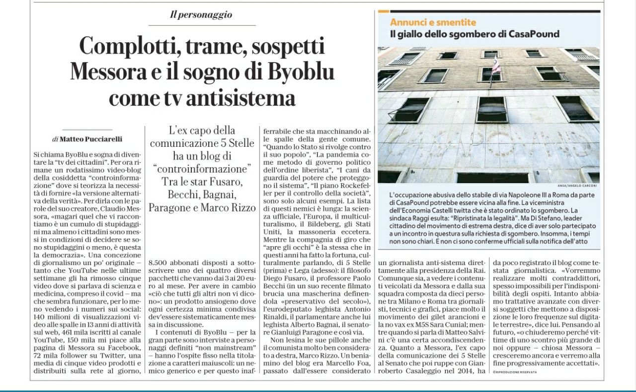 Ne prendiamo energicamente le distanze, anche per non essere schedati dai Padroni del Discorso, come Byoblu. ![]()