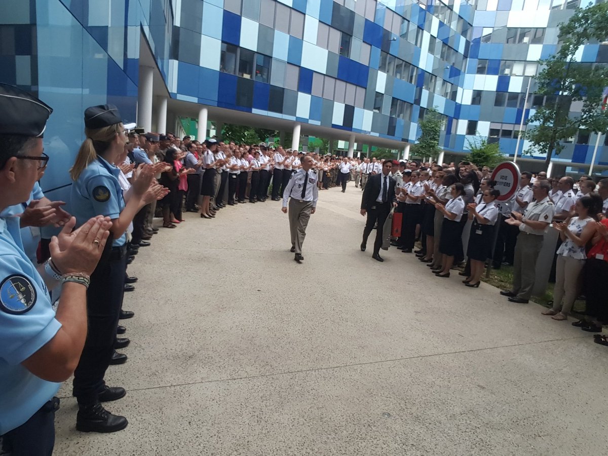 Un applauso corale, lunghissimo, insistito, di tutti i rappresentanti delle tre armi, e dei funzionari. Una sola parola: “Grazie”, Merci.