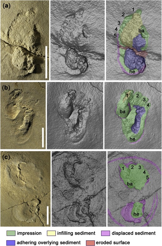 Invece le orme del passeggiatore di Creta, lunghe media 21 centimetri, sono inequivocabili: sono l’impressione di due “bulbi” distinti tipicamente umani (uno è il calcagno, l’altro l’alluce, che lasciano tracce globulari); l’alluce non è opponibile; le dita più piccole sono tutte parallele, e – fato degno di nota – non mostrano di aver avuto artigli.