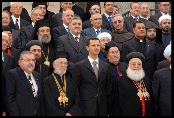 La foto non è stata pubblicata dai nostri media. A domanda del perché, se si degnassero di rispondere, probabilmente direbbero: è propaganda. Come sappiamo, i nostri media occidentali non pubblicano mai propaganda, se non ha la denominazione d’origine controllata occidentale. Del resto, non fatichiamo a riconoscere che questa foto è propaganda. Propaganda che indica una cosa: che tutti i cristiani di Siria, maroniti ed ortodossi, cattolici e Assiri e Melkiti, si stringono attorno al presidente Assad, solidali con lui e il suo regime.