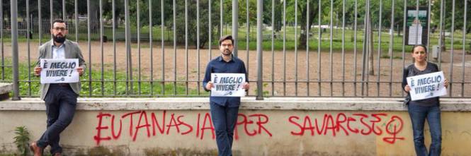 La scritta “Eutanasia per Savarese” su un muro in via Nomentana a Roma