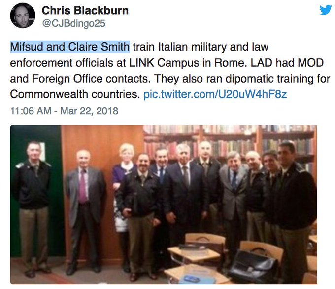 Ora bisogna chiedersi come mai in quella Link Campus, Mifsud ha tenuto lezioni ad altissimi elementi del controspionaggio italiano insieme ad una sua collega ed agente britannica come Claire Smith.