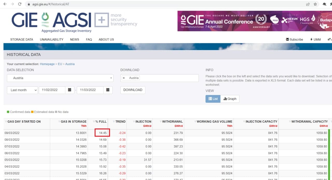 Questa crisi è premeditata, ma adesso ci chiedono di stringere energeticamente la cinghia. Austria e Belgio (15% e 16% di riserve rimaste) sono messe malissimo, l’Italia non va meglio. Ti do il link dove puoi verificare anche tu che quest’anno non sono state effettuate “iniezioni” di gas nei depositi. Adesso a maggior ragione che c’è la guerra il gas dalla Russia non lo compreranno piu https://agsi.gie.eu/#/historical/AT