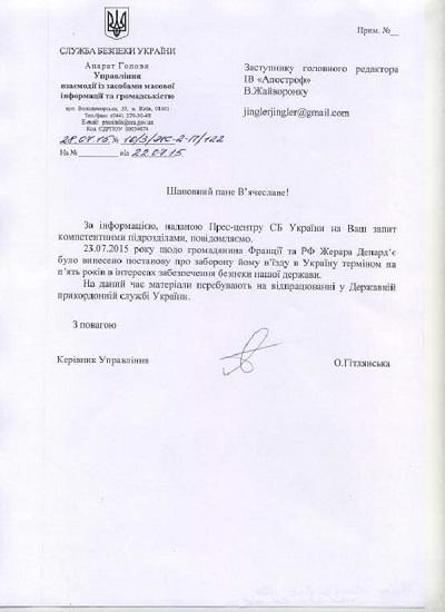 Frattanto i servizi di sicurezza di Kiev hanno emesso un’ordinanza (eccola qui sopra) che “vieta al cittadino franco-russo Gérard Depardieu di entrare in Ucraina per un periodo di cinque anni, al fine di provvedere alla sicurezza del nostro governo” (vi avevo avvertito che questo è un pezzo umoristico).