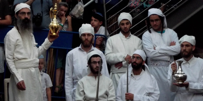 Ormai sono alle prove generali del rituale, che è descritto minuziosamente nella Torah. Nella dedicazione di lunedì, kohanim (“sacerdoti”) vestiti di bianco nel costume prescritto dalla Torah, hanno recitato “la rievocazione integrale del Korban Tamidi (offerta eterna). A fine settembre scorso, avevano raccolto l’acqua per il Sukkot esibendo il ricco vasellame d’oro (anch’esso minuziosamente descritto nella Bibbia) costruito appositamente per il tempio futuro, sotto lo sguardo compiaciuto di “Rabbi Hillel Weiss, portavoce del Sanhedrin e organizzatore dell’evento”. In quell’occasione un altro rabbi, “ il rabbino Azriel Ariel ha annunciato la nascita della giovenca rossa.