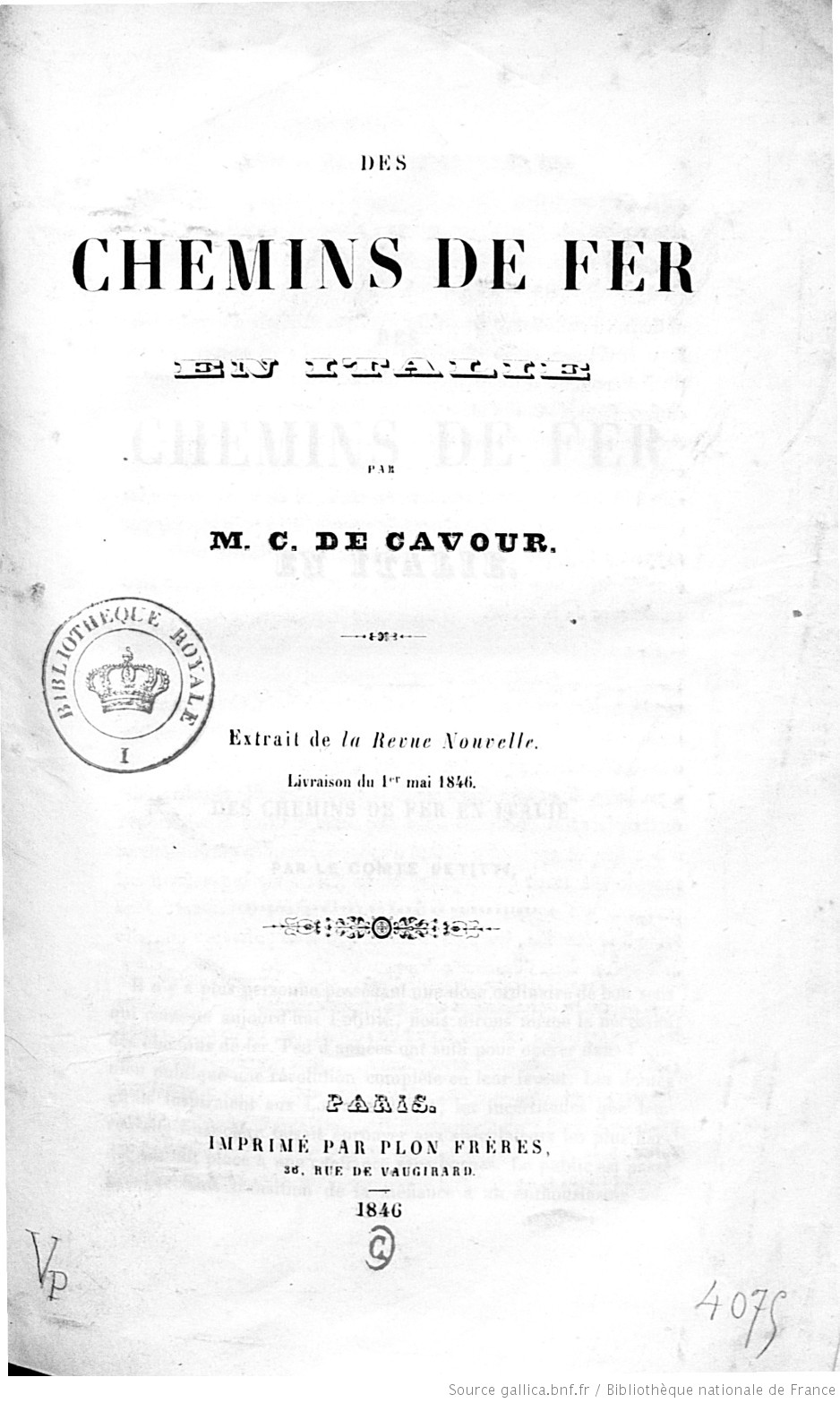 Nel maggio del 1846 il conte Camillo Benso di Cavour pubblica sulla Revue Nouvelle un saggio dal titolo Les Chemins de Fer en Italie. Naturalmente in francese, che è la sua lingua materna: stava giusto imparando l’italiano.