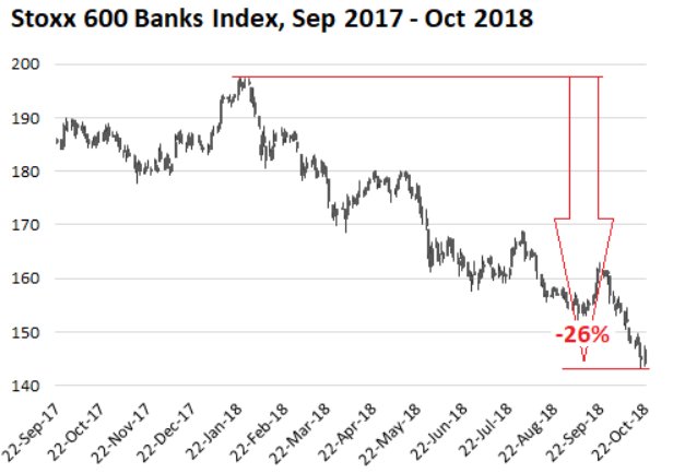 Eppure dovrebbero sbrigarsi a capire perché, come si vede dai collassi delle Borse negli ultimi giorni, “l’economia europea è entrata nella fase discendente del ciclo, che porta alla recessione”, segnala Zibordi che ne vede gli effetti dai suoi schermi di trader “ Come lo so ? perchè l’indice delle banche Europee ha perso il 26% (quelle italiane un 32%) e questo indica sempre guai”.