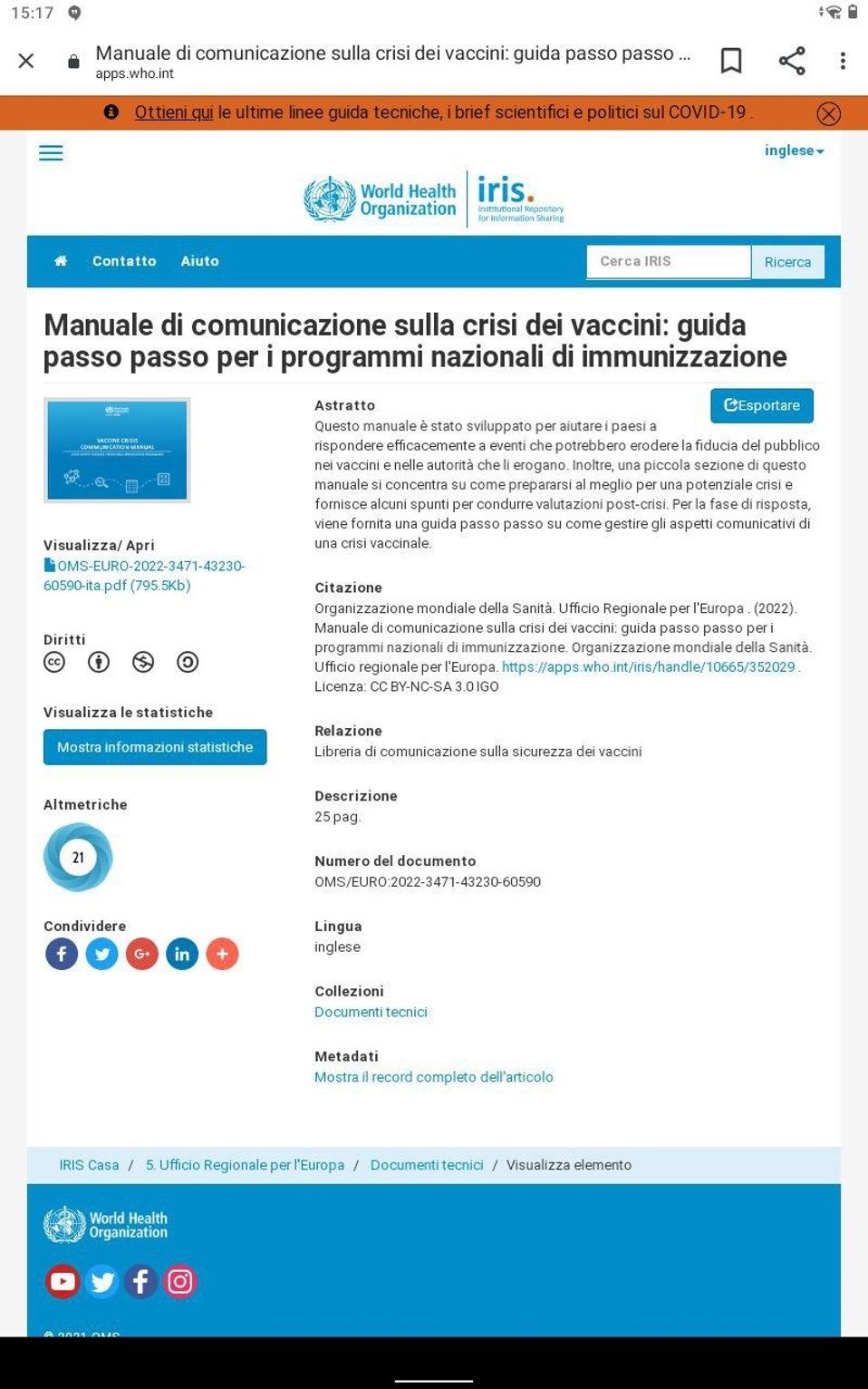 Direttiva OMS su come “convincere” tutti al vax Maurizio Blondet 14 Gennaio 2023 https://apps.who.int/iris/bitstream/handle/10665/352029/WHO-EURO-2022-3471-43230-60590-eng.pdf?sequence=1&isAllowed=y