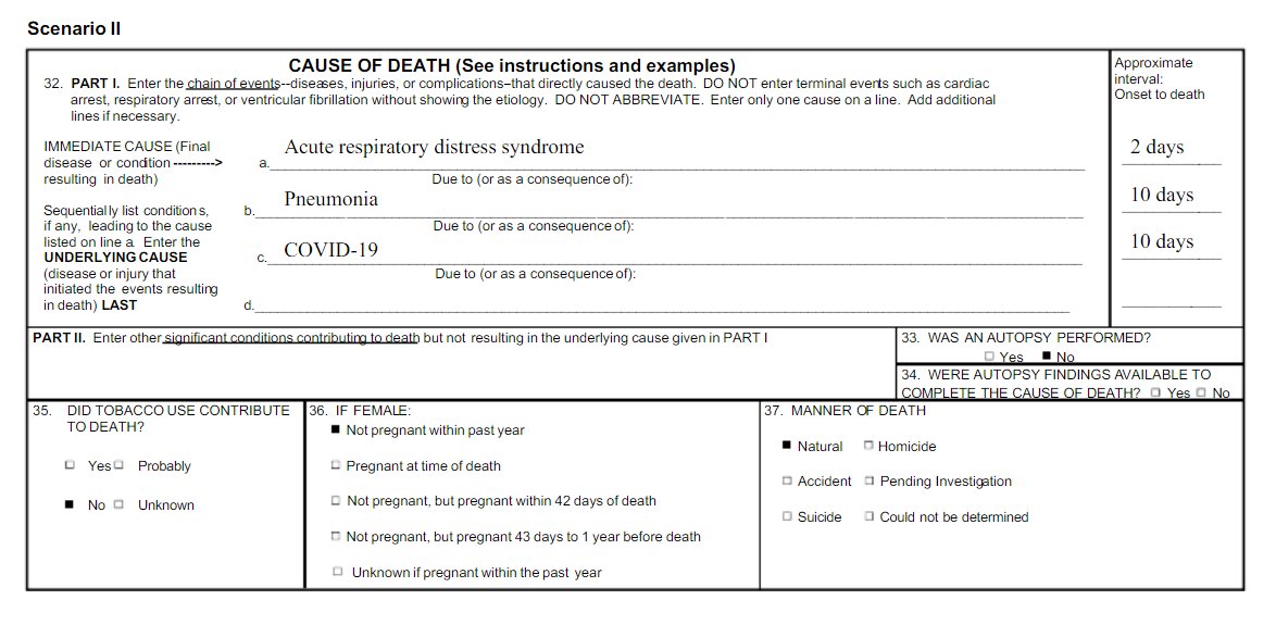 Il dottor Scott Jensen , medico del Minnesota che è anche senatore repubblicano dello stato, denuncia di aver ricevuto dallo HHS (il ministero della Salute) un documento di 7 pagine che lo istruiva per compilare i certificati di morte con una diagnosi COVID-19 senza un test di laboratorio per confermare che il paziente aveva effettivamente il virus.