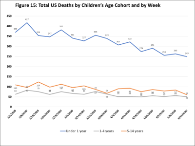 Per coincidenza, durante il lockdown “i funzionari della sanità pubblica hanno biasimato il forte declino delle vaccinazioni infantili poiché i genitori non stavano portando i loro bambini negli ambulatori pediatrici per fare i loro controlli regolari previsti per neonati. Nel numero del 15 maggio del Rapporto settimanale sulla mortalità e mortalità del CDC (MMWR), un gruppo di autori del CDC ha riportato un forte calo degli ordini dei fornitori di vaccini e un calo delle dosi pediatriche somministrate. (8) Queste diminuzioni sono iniziate all’inizio di marzo, verso il momento in cui le morti infantili hanno iniziato a diminuire.